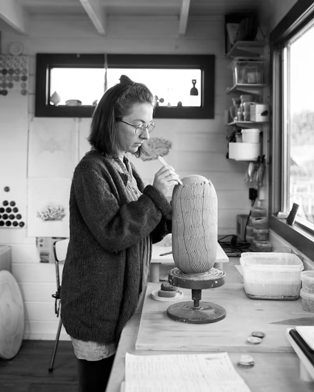 Her desire to stave off our digital riddled and splintered multi-realities is remedied through a process of intensely tactile moulding technique. Deliberately contemplative, her work creates a time capsule of discovery for the viewer with its intricately detailed markings drawing them in. Walton’s one-off abstract ceramics have exhibited worldwide; including the Victoria and Albert Museum, Tate Modern, Make Hauser & Wirth, Officine Saffi, Collect 2020 and was awarded the Wedgewood Prize at the British Ceramics Biennial in 2019.